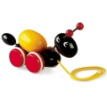 引っ張ると背中のタマゴがくるくる回ります。タマゴの不思議な動きと揺れる触角としっぽが見ていてとっても楽しい!