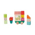 大きなお花や小さなお花をワゴンに載せて、楽しく作るお花屋さん。積み方次第で、1つのつみきが植木鉢になったり帽子になったりと、自在に創造力をかきたてます。サイズは、子どもの手に大きすぎず、大人の手に小さすぎない、1辺3cmを基本サイズとしていますので幅広い年齢の方に遊んで頂けます。木目を活かしたきれいな塗装は、「木の良さ」を損なわないように考えられています。窓辺や棚など小さなスペースにも飾れて、あたたかな空間を演出します。