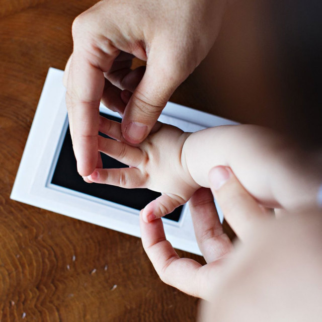 【出産祝い】大切な思い出の品を、可愛く保管!NYデザインのメモリアルアイテムの登場です。お子さまの手足を汚さずに、簡単に手形・足形をプリント! 付属のクリーンタッチインクパッドでお子さまの手や足に直接インクをつけずに手形・足形がとれます。