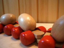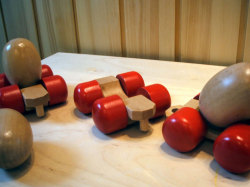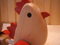引っ張るとたまごがくるくると回転しながら一緒についてきます。店頭でもかわいいと大好評です。
